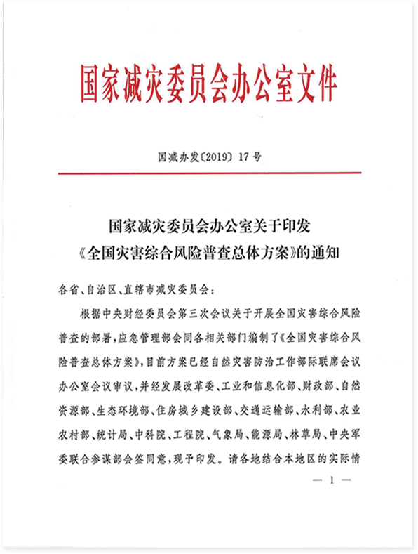 ●2019年12月,國家減災(zāi)委員會辦公室印發(fā)《全國災(zāi)害綜合風(fēng)險普查總體方案》