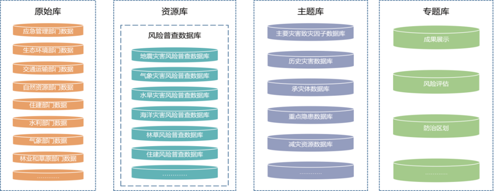 為滿足自然災(zāi)害風(fēng)險普查成果數(shù)據(jù)的存儲、匯交、管理、查詢、共享等需求,《全國災(zāi)害綜合風(fēng)險普查總體方案》要求基于分布式、云計算、大數(shù)據(jù)等技術(shù),構(gòu)建面向省、市、縣各層級以及應(yīng)急管理、水利、氣象等多個涉災(zāi)部門的災(zāi)害風(fēng)險和減災(zāi)能力數(shù)據(jù)體系。