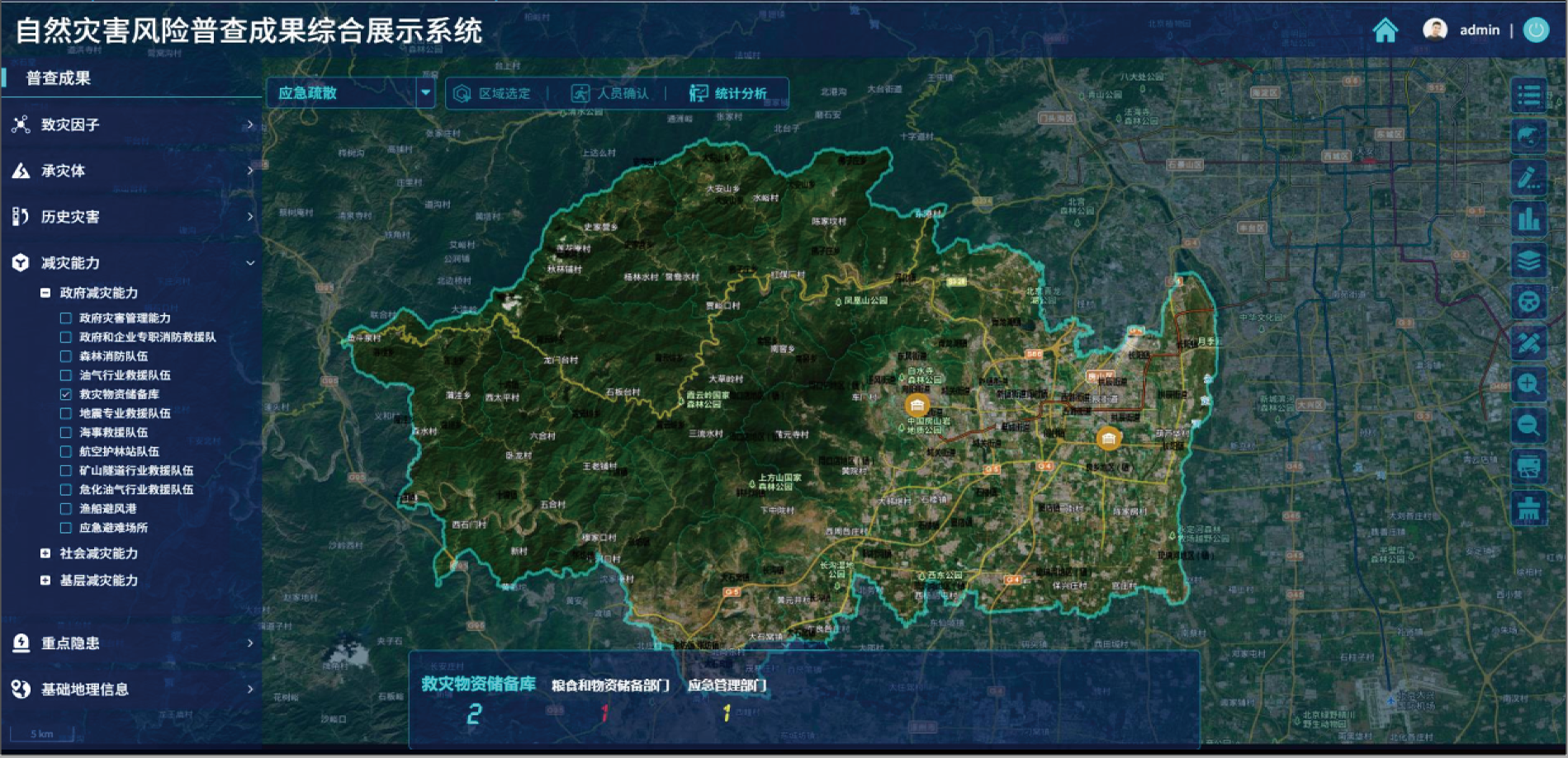 自然災(zāi)害風(fēng)險普查成果綜合展示平臺包含致災(zāi)因子、承災(zāi)體、歷史災(zāi)害、減災(zāi)能力、重點(diǎn)隱患等專題,解決各類二三維普查數(shù)據(jù)存儲管理、共享交互、動態(tài)展示、空間分析等問題,實現(xiàn)風(fēng)險要素信息化、普查數(shù)據(jù)可視化、決策分析智能化。