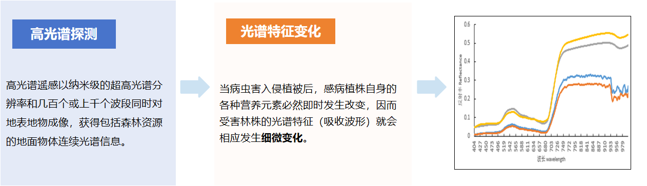 高光譜遙感以其強(qiáng)大的光譜敏感性(納米級(jí)的窄通道)能夠探測到植被在病蟲害侵害早期與健康植被的細(xì)微光譜差異,為森林病蟲害的早期監(jiān)測預(yù)警提供了可能。通過AIMS多模態(tài)航攝儀獲取高分辨率的影像數(shù)據(jù)、多光譜數(shù)據(jù)及點(diǎn)云數(shù)據(jù),時(shí)空同步的多源數(shù)據(jù)融合,結(jié)合機(jī)器學(xué)習(xí),利用林業(yè)領(lǐng)域的知識(shí)庫進(jìn)行訓(xùn)練,可以做到單木級(jí)別的松材線蟲染病樹木的自動(dòng)化提取?;跇颖菊{(diào)查、目視解譯、圖像識(shí)別、機(jī)器學(xué)習(xí)、深度學(xué)習(xí)等方法解決林業(yè)病蟲害方面的需求。