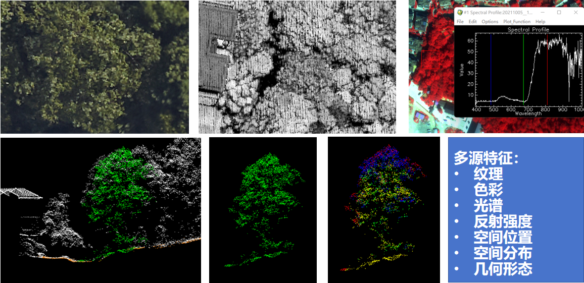 在智慧林業(yè)孿生建設(shè)中,基于飛燕遙感多模態(tài)數(shù)據(jù),時空同步的高光譜影像、激光點(diǎn)云結(jié)合少量的地面或街景影像,即可自動化、大范圍快速生成單體化樹木三維模型場景。激光點(diǎn)云提供幾何信息,高光譜影像進(jìn)行樹種識別,通過實(shí)測樣本庫自動匹配樹種三維模型,從而達(dá)成樹木模型的批量構(gòu)建,并具備測繪學(xué)意義上的幾何與屬性精度。