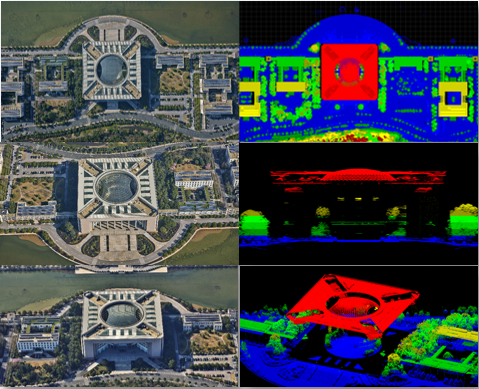 利用多模態(tài)數(shù)據(jù)的優(yōu)勢(shì),可以在簡(jiǎn)化和輕量化的基礎(chǔ)上進(jìn)一步提升真實(shí)性和豐富度。利用激光點(diǎn)云輔助生成高精度建筑物模型,利用傾斜影像映射參考紋理,通過對(duì)紋理進(jìn)行分析,便能得到更加貼近現(xiàn)實(shí)的模型紋理,讓表達(dá)更加真實(shí)。
