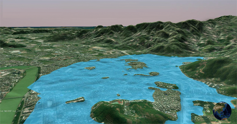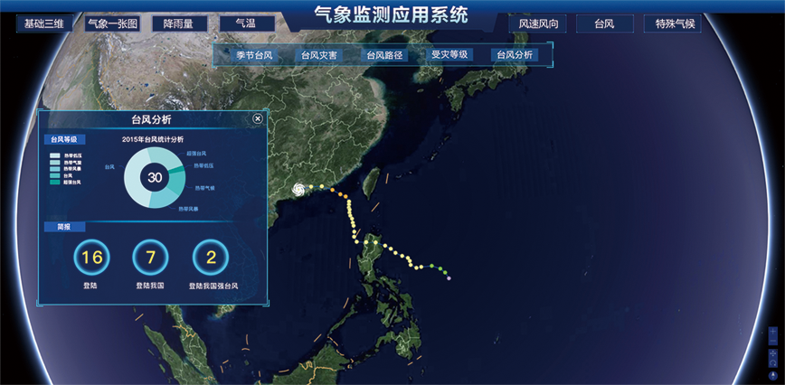 通過三維GIS技術(shù),結(jié)合氣象部門發(fā)布的氣象數(shù)據(jù)、現(xiàn)有的區(qū)域內(nèi)地形、河網(wǎng)等水文信息,構(gòu)建水利氣象監(jiān)測系統(tǒng)。基于氣象因素動態(tài)分析,科學(xué)預(yù)測區(qū)域內(nèi)水域、水利造成的影響范圍及影響程度。針對極端天氣,例如臺風(fēng),系統(tǒng)會錄入臺風(fēng)的運動軌跡與時間信息,預(yù)測臺風(fēng)登陸的時間地點,適時發(fā)出預(yù)警信息。