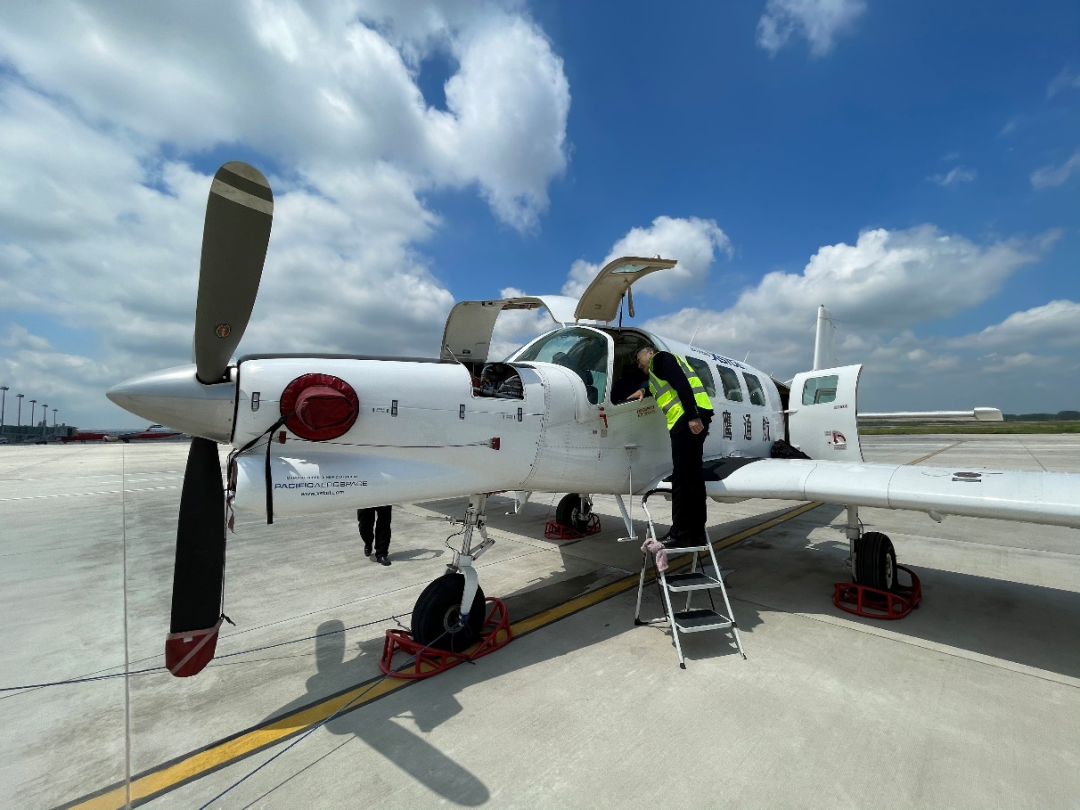 林顥登上航攝飛機(jī),查看了飛燕遙感自主采購(gòu)的大幅面數(shù)碼航攝儀等設(shè)施,了解了飛燕遙感獨(dú)特的方案實(shí)施體系,包括基礎(chǔ)航攝的工作流程和空域協(xié)調(diào)難點(diǎn)等,并了解了當(dāng)前的數(shù)據(jù)獲取進(jìn)度等情況。林顥強(qiáng)調(diào),0.2m分辨率航攝影像數(shù)據(jù)是我省市縣級(jí)大比例尺基礎(chǔ)地理信息資源建設(shè)、實(shí)景三維江蘇和地理信息公共服務(wù)平臺(tái)建設(shè)的重要基礎(chǔ)數(shù)據(jù),項(xiàng)目牽頭處室和實(shí)施單位飛燕遙感要在確保人員安全和數(shù)據(jù)質(zhì)量前提下,加快推進(jìn)實(shí)施數(shù)據(jù)獲取工作,及時(shí)為基礎(chǔ)測(cè)繪后續(xù)生產(chǎn)提供數(shù)據(jù)源。